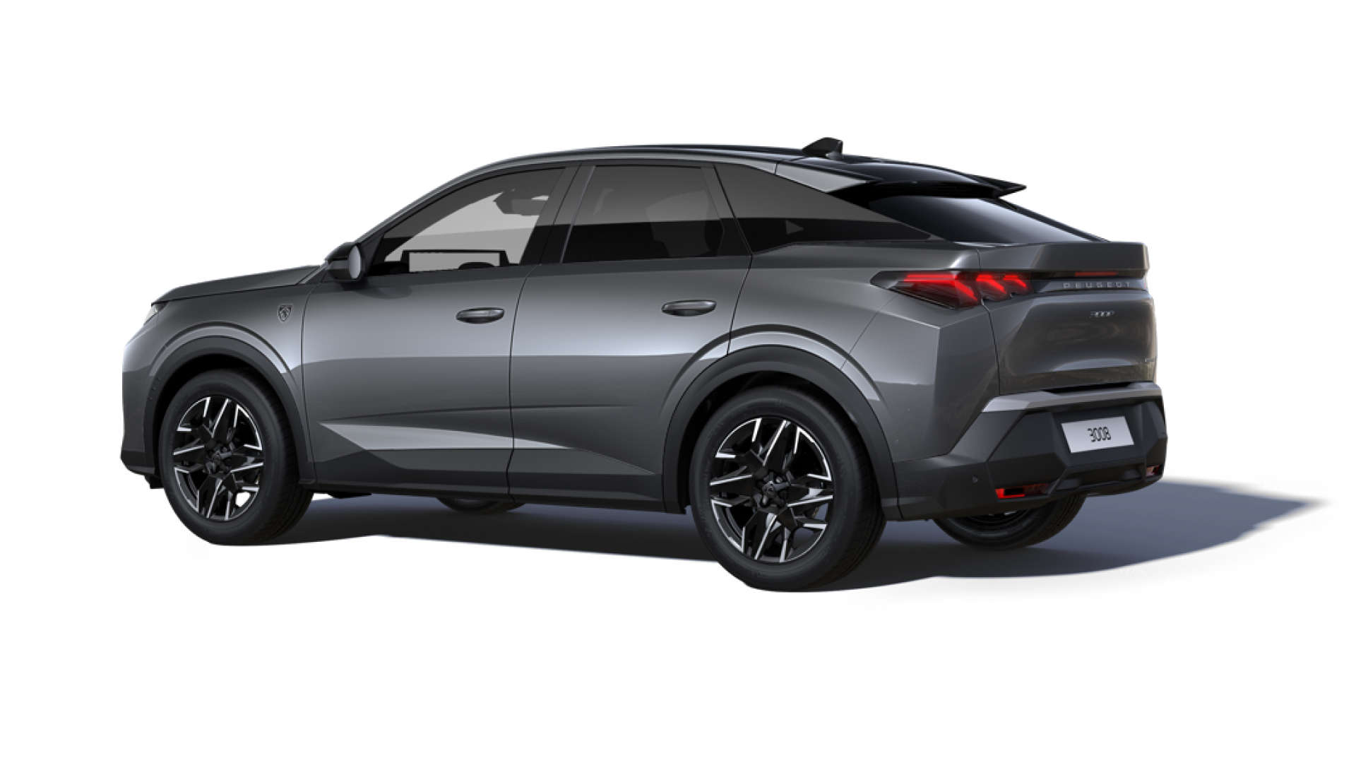 Новий Peugeot 3008 на дорозі, вигляд ззаду з лівого боку